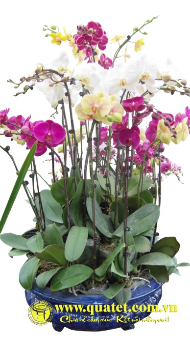 Chậu hoa bao gồm 20 cây lan Hồ điệp các loại. Giá trên đã bao gồm chậu sứ cao cấp